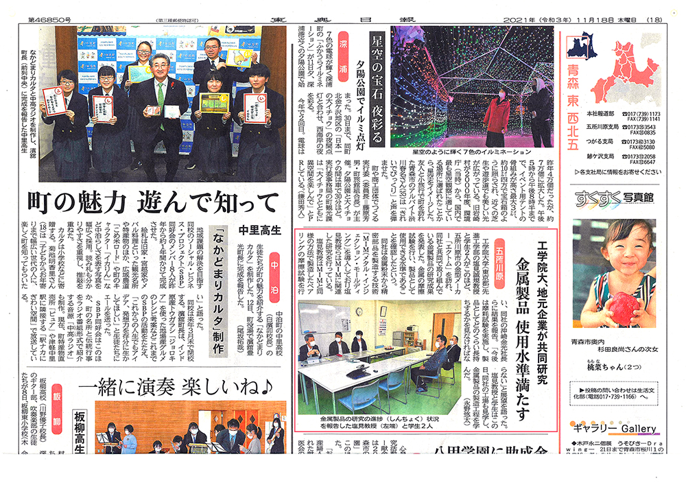 東奥日報(11月18日(木)18面)に当社と工学院大学の共同研究記事が掲載されました。